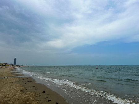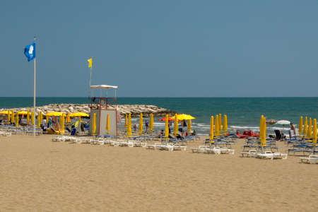 Beach of Lido di Jesolo at adriatic Sea in a beautiful summer day Italy
