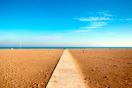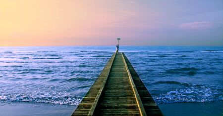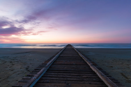Wooden pier in the morning sun, beach of Lido Di Jesolo, Italy