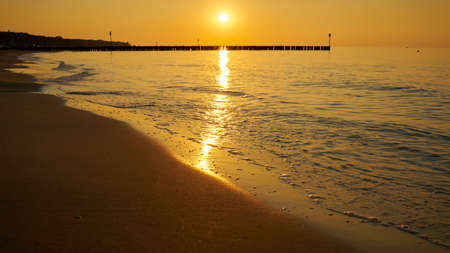 Sunset on the beach of Kolobrzeg on the coast of the Baltic Sea in Poland