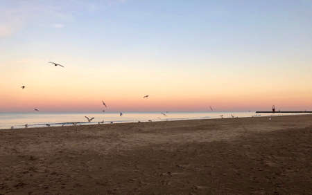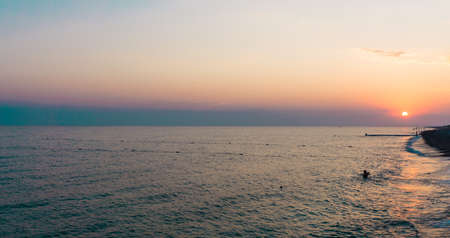 Sunset at beach of Lido di Jesolo venetian Riviera Italy
