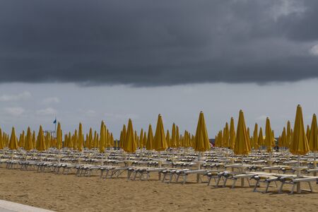 The morning on the beach at Torre Pedrera at Rimini in Italy