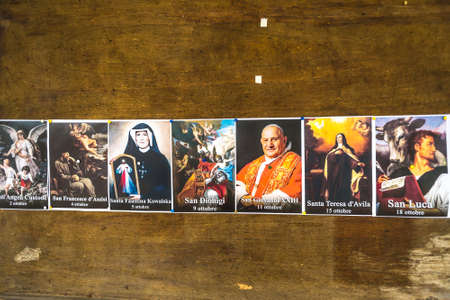 SAN BERNARDINO (RA), ITALY – OCTOBER 31, 2018: The priest put on the entrance of the church the images of the Saints to remind the religious connotation of Halloween