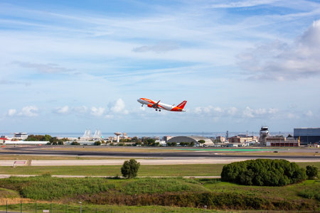 Airplane taking off from Lisbon Airport