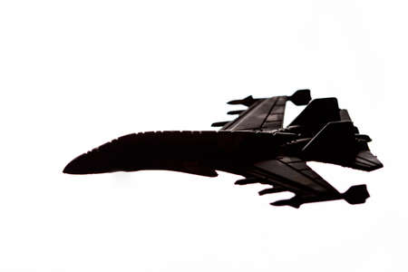 Close-up of toy white airplane Object on a black Background