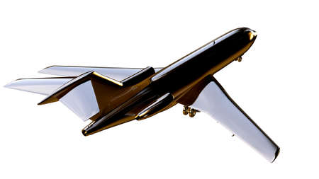 3d rendering of a golden airplane on isolated on a white background