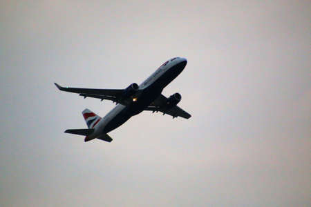 London in the UK in June 2022. A view of an Aeroplane taking off from Heathrow Airport