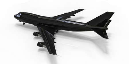 Large passenger aircraft of large capacity for long transatlantic flights. Black airplane on white isolated background. 3d illustration
