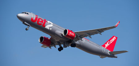 Tenerife, Spain january 26st, 2026. Airbus A321-251NX Jet2 airlines, flies in the blue sky. Takeoff at Tenerife Airport