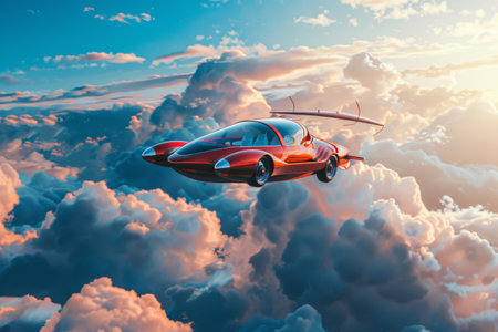 A flying car with advanced propulsion technology soaring through the sky AI generated