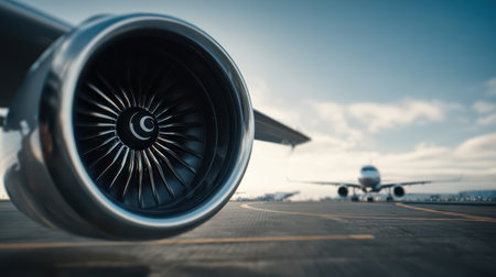 This close-up shot captures the roaring engines of planes on the runway, showcasing the power and technology behind modern aviation. The dynamic scene highlights the excitement of air travel.