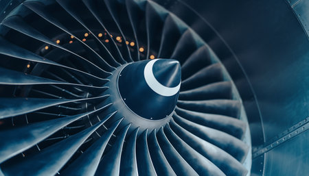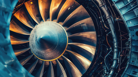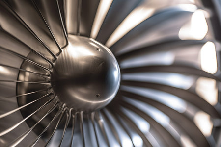 Close-Up of Modern Jet Engine Turbine Blades in Aircraft Industry