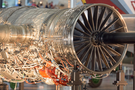 BERLIN, GERMANY - JUNE 01, 2016: Turbofan engine of the aircraft for simulate of the effects zero gravity - Airbus A310 ZERO-G. Exhibition ILA Berlin Air Show 2016