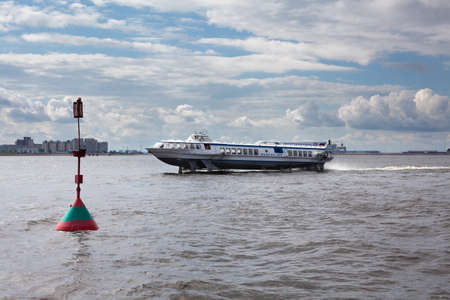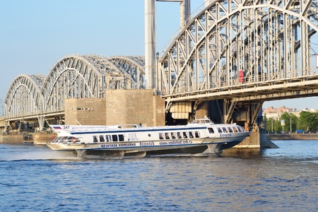 St. Petersburg, Russia – July 17: Hydrofoil boat in the waters of the Neva River. Passenger ship for tourists and visitors
