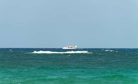 Peaceful ocean landscape with touristic ship.