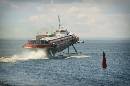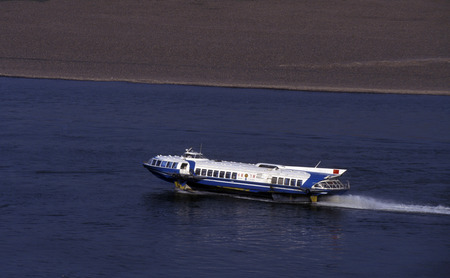 The passenger boat on hydrofoils going down the river Saigon (Song Sai Gon) on a sunny day. Vietnam, Southeast Asia