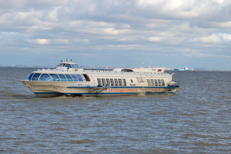 ST. PETERSBURG, RUSSIA - OCTOBER 05, 2015: The ship Meteor on the line Winter Palace - Peterhof in the gulf of Finland