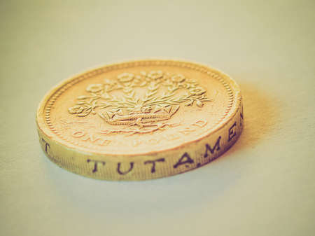 Vintage looking British Pounds coins (UK currency) over a dark background