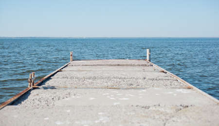 Wooden pier, sea and a blue sky. Beautiful background. Minimalism