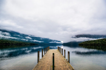 Wooden pier in serenity lake in Patagonia, Argentina