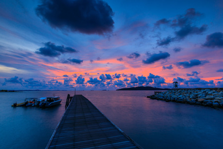 Fishing boat pier at dusk with beautiful twilight sky