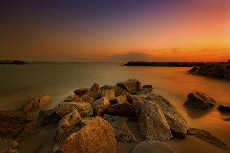 Beautiful view of sunset at Lumut,Perak,Malaysia. soft focus, blur due to long exposure. Visible noise due to high ISO.