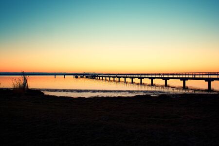 Sunset on a jetty at the Baltic Sea in Poland.