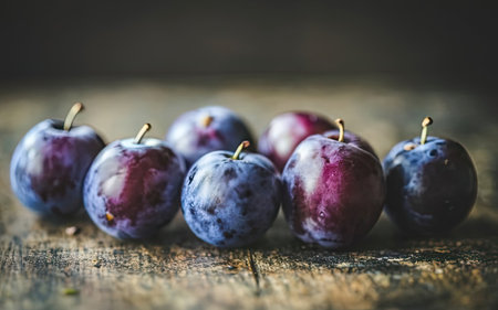 plums fruits natural products on a wooden table top view