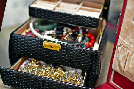 Collection of bijouterie in jewelry box