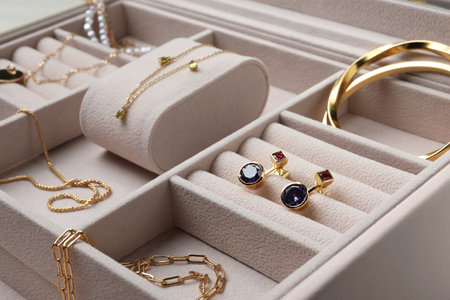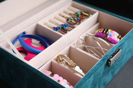 Beautiful bijouterie in jewel box, closeup view