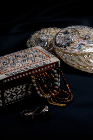 Sea shells, Jewelry box of polished sea shells ,a traditional hand craft in Syria and Damascus.