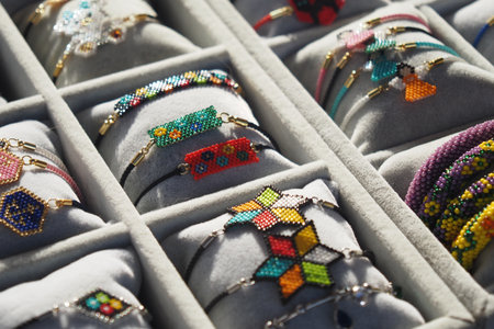 Colorful handmade bracelets displayed in a jewelry box