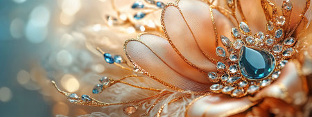 Elegant Floral Design With Sparkling Jewels and Intricate Lace Details in a Soft, Dreamy Atmosphere