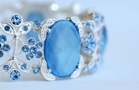 Silver bracelet with color jems dark isolated background reflection light antiques Jewelry