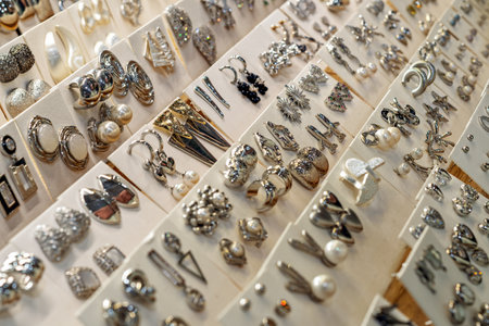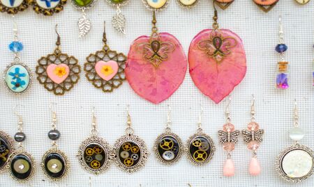 View of earring collections. Beauty and fashion accessories.