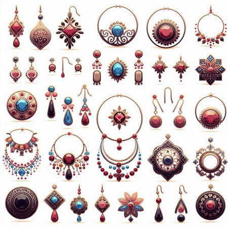 Jewelry set. Collection of vintage jewelry elements. Vector illustration.