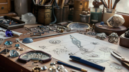 Crafting beauty. A jeweler meticulously polishes gemstones, capturing the essence of artistry and precision in this mesmerizing workspace. Generated A.I.