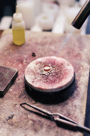 Craft jewelery making with professional tools. A handmade jeweler process, manufacture of jewellery.