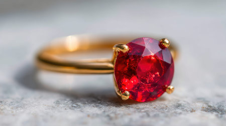 AI Generated. Charming ruby glows vividly on a textured surface during soft daylight