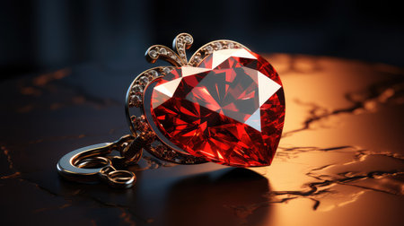A stunning close-up of elegant heart-shaped red jewelry with sparkling gems, set against a dark backdrop, perfect for romantic occasions and celebrations.