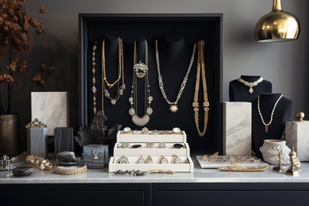 jewelry display with a mix of classic and contemporary pieces, created with generative ai