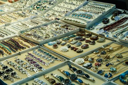 Assortment Of Vintage Jewelry Displayed At Flea Market.