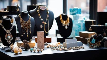 Boutique Display: Accessories and Jewelry Sets with Necklaces and Earrings. AI