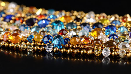 A captivating close-up of colorful sparkling gemstones in a luxurious arrangement, perfect for showcasing elegance and glamour in modern jewelry design.