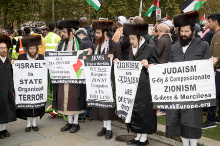 4th November 2017, London, United Kingdom:-Jewish men protesting Israel at a pro Palestine rally in Parliment Square