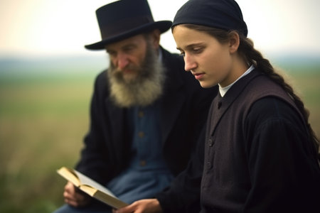 Portrayal of Amish people, traditional lifestyle, close bonds of community, rural simplicity, values of cultural richness, traditions of close-knit family friendly living group. village country life