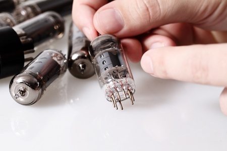 Glass vacuum radio tubes. Isolated image on white background