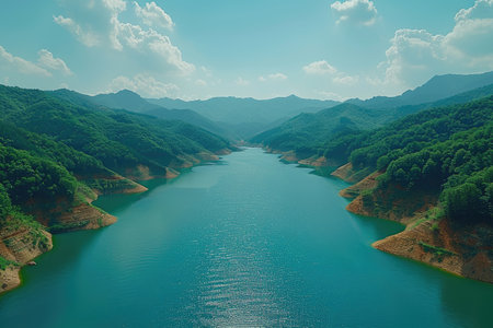 Winding chorokh River flowing through deep green mountains near Artvin city in northeastern Turkey, surrounded by rural villages and rugged terrain, concept of nature, beautiful landscape