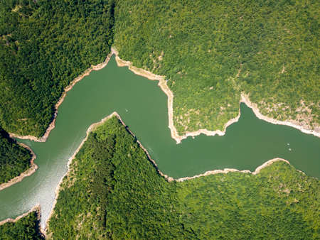 Aerial view of Tsankov kamak Reservoir, Smolyan Region, Bulgaria