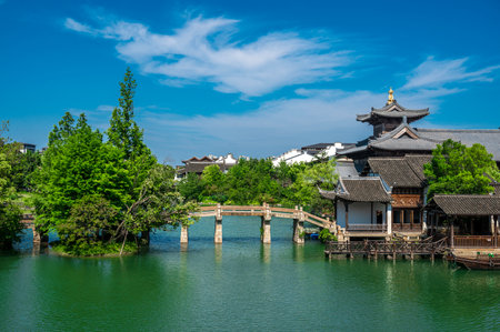 Traditional Chinese architecture by river in the old town of Nanxun, Zhejiang, China