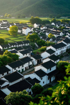 Rape blossoms and village in Wuyuan, Jiangxi, China